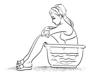 This means you have to sit down after your defecation in a large plastic tub, full of warm water with Betadine solution in it.