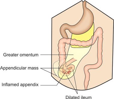 We call it appendicular lump formation. This stage doesn’t require surgery. On the other hand, surgery is not possible means appendicectomy is not possible at this stage. Because appendix wrapping by omentum is so tight that we could not separate it while surgery for appendicectomy. Forceful separation of omentum may cause a tear of the caecum which is a very dangerous situation.